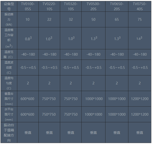 推力:10-75kN,容積:0.5-4立方1、汽車零部件單向溫度(濕度)振動(dòng)綜合試驗(yàn)系統(tǒng)